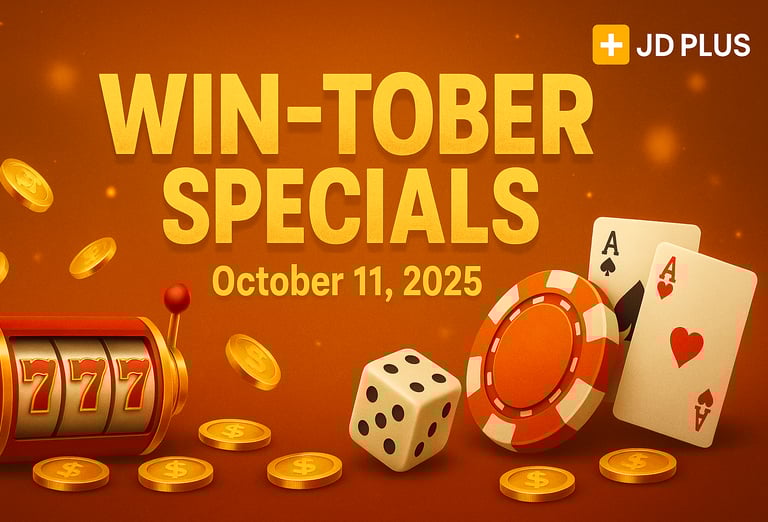 The Win-tober Specials at JD PLUS are loaded with exciting opportunities that keep the thrill alive from start to finish. Here’s what you can look forward to this October: